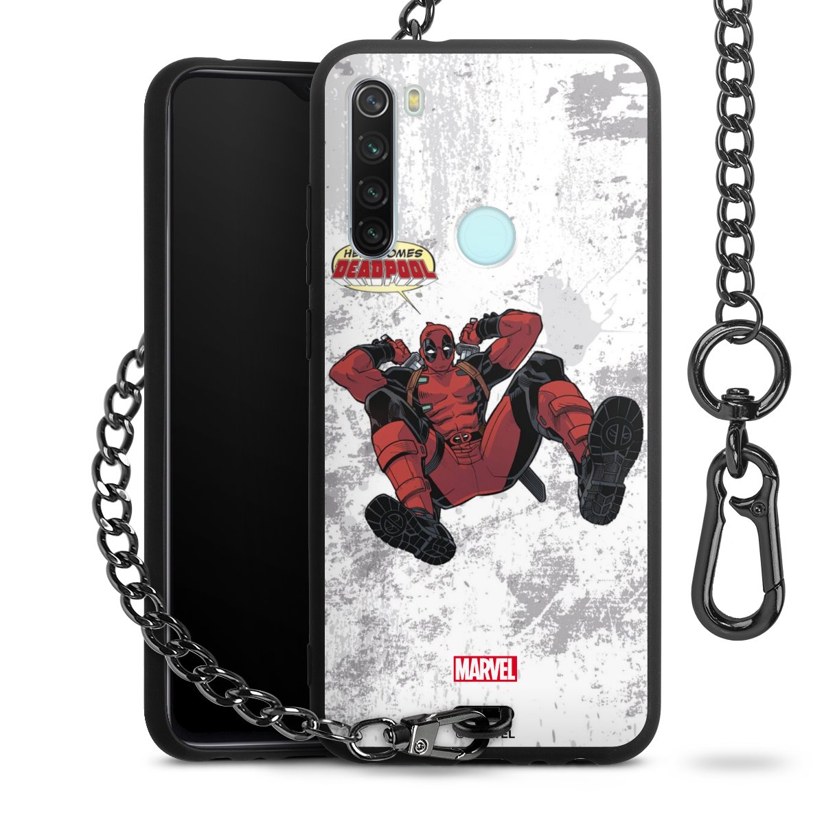 Die mattschwarze Silikon-Handyhülle besteht aus robustem TPU (thermoplastisches Polyurethan). Sie ist flexibel und schützt Dein Smartphone vor Stößen und Kratzern. Die Kette sowie der Karabinerhaken sind aus Metall in Gunmetal-Optik gefertigt. Für dieses Produkt kommen ausschließlich TÜV-geprüfte Materialien zum Einsatz.