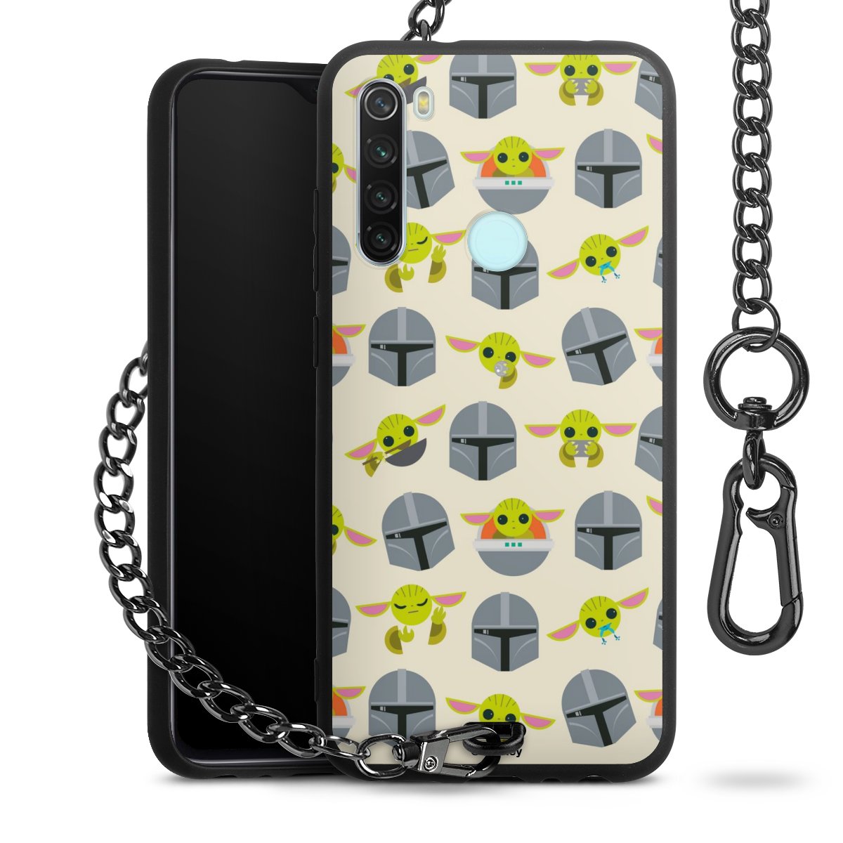 Die mattschwarze Silikon-Handyhülle besteht aus robustem TPU (thermoplastisches Polyurethan). Sie ist flexibel und schützt Dein Smartphone vor Stößen und Kratzern. Die Kette sowie der Karabinerhaken sind aus Metall in Gunmetal-Optik gefertigt. Für dieses Produkt kommen ausschließlich TÜV-geprüfte Materialien zum Einsatz.