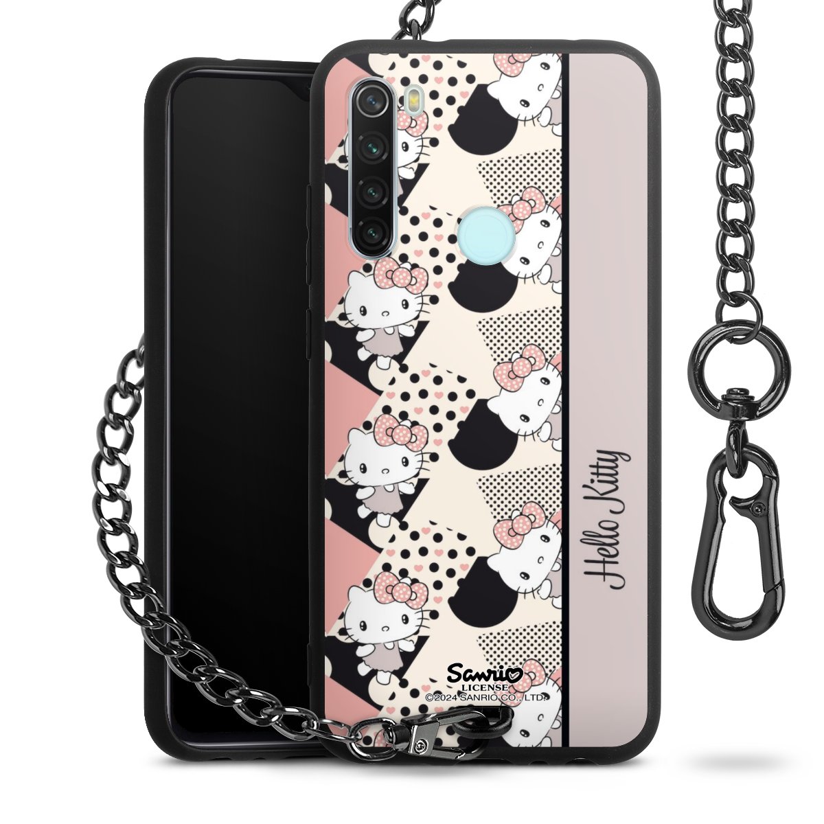Die Handyhülle verfügt über eine mittig am unteren Rand platzierte Öse, an der die Metallkette stabil befestigt ist. Bestelle die Hülle einfach für Dein Smartphone-Modell, dann passt sie wie angegossen und Du brauchst sie bloß einmal anzudrücken. Handy in die Tasche, Karabiner an den Hosenbund – schon kann die Party starten.