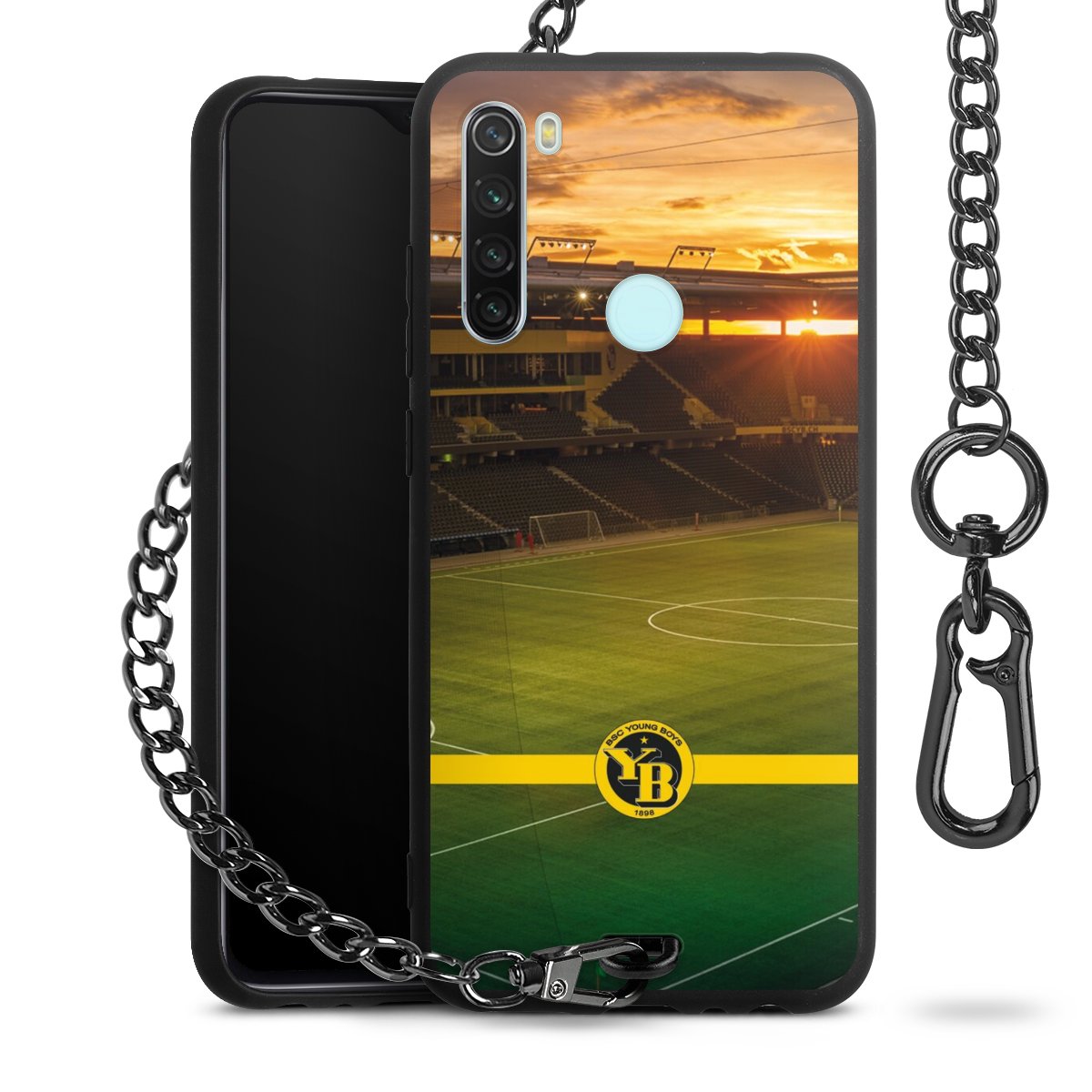 Die mattschwarze Silikon-Handyhülle besteht aus robustem TPU (thermoplastisches Polyurethan). Sie ist flexibel und schützt Dein Smartphone vor Stößen und Kratzern. Die Kette sowie der Karabinerhaken sind aus Metall in Gunmetal-Optik gefertigt. Für dieses Produkt kommen ausschließlich TÜV-geprüfte Materialien zum Einsatz.