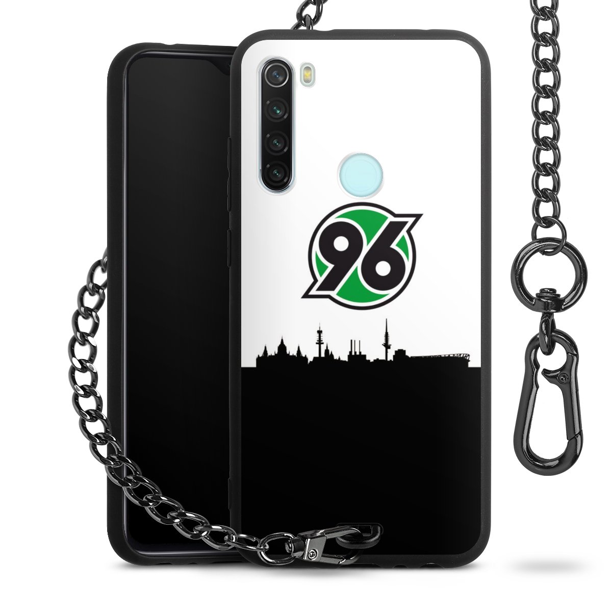 Die mattschwarze Silikon-Handyhülle besteht aus robustem TPU (thermoplastisches Polyurethan). Sie ist flexibel und schützt Dein Smartphone vor Stößen und Kratzern. Die Kette sowie der Karabinerhaken sind aus Metall in Gunmetal-Optik gefertigt. Für dieses Produkt kommen ausschließlich TÜV-geprüfte Materialien zum Einsatz.