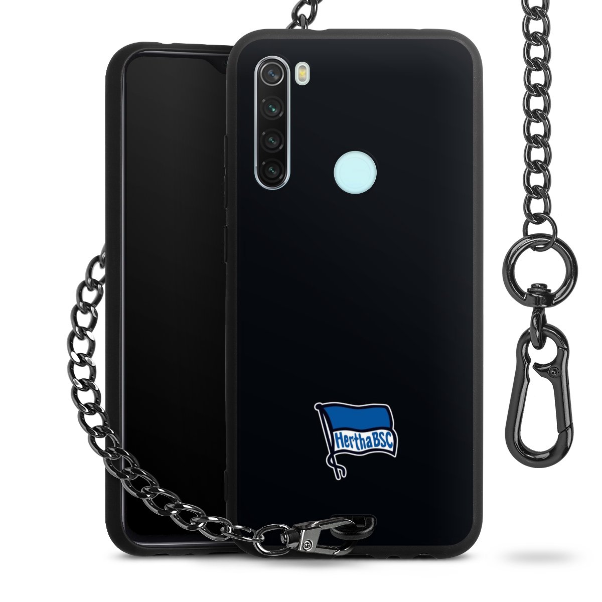 Die mattschwarze Silikon-Handyhülle besteht aus robustem TPU (thermoplastisches Polyurethan). Sie ist flexibel und schützt Dein Smartphone vor Stößen und Kratzern. Die Kette sowie der Karabinerhaken sind aus Metall in Gunmetal-Optik gefertigt. Für dieses Produkt kommen ausschließlich TÜV-geprüfte Materialien zum Einsatz.