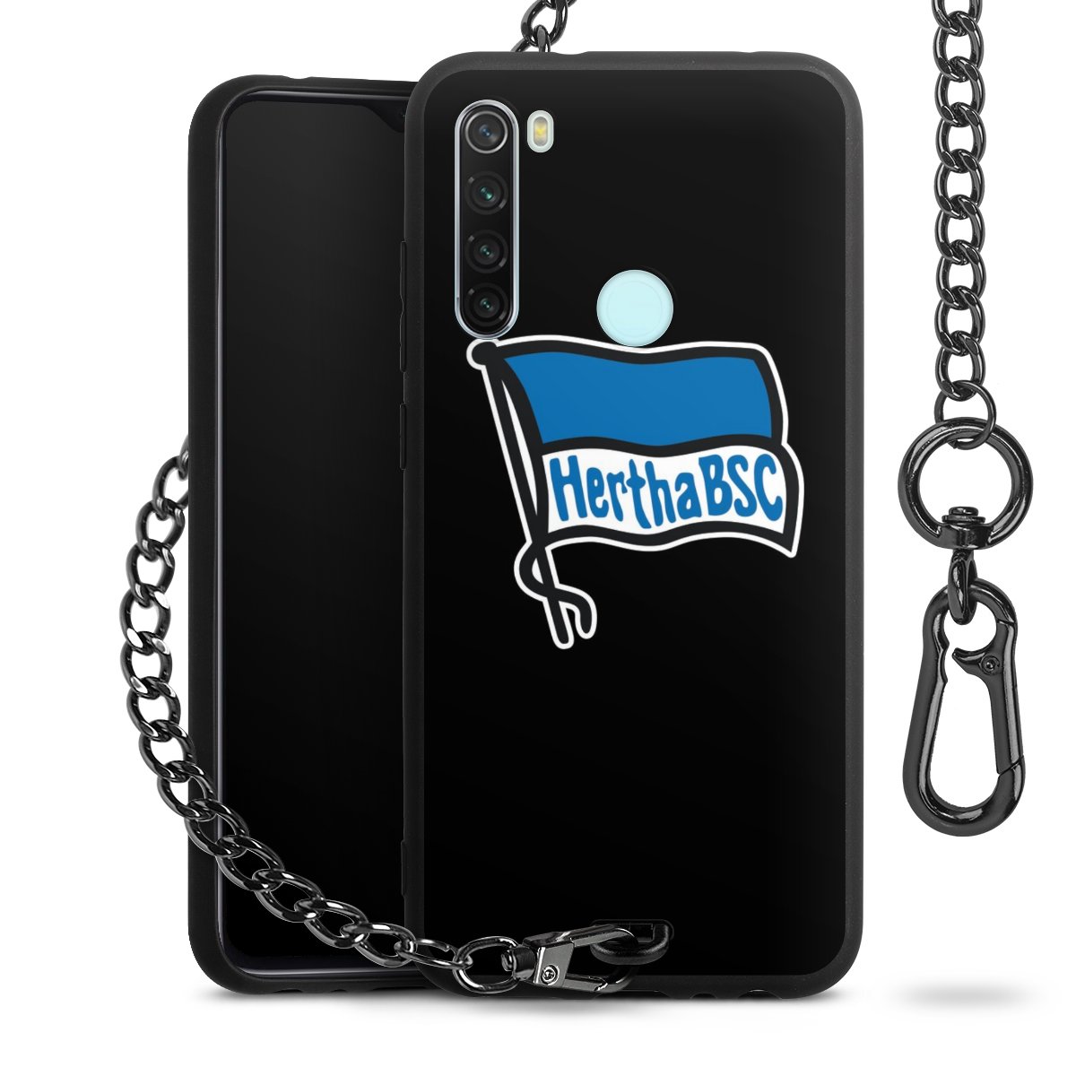 Die mattschwarze Silikon-Handyhülle besteht aus robustem TPU (thermoplastisches Polyurethan). Sie ist flexibel und schützt Dein Smartphone vor Stößen und Kratzern. Die Kette sowie der Karabinerhaken sind aus Metall in Gunmetal-Optik gefertigt. Für dieses Produkt kommen ausschließlich TÜV-geprüfte Materialien zum Einsatz.
