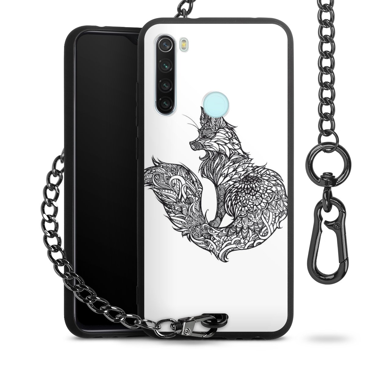 - Mattschwarze Handyhülle mit Metallkette