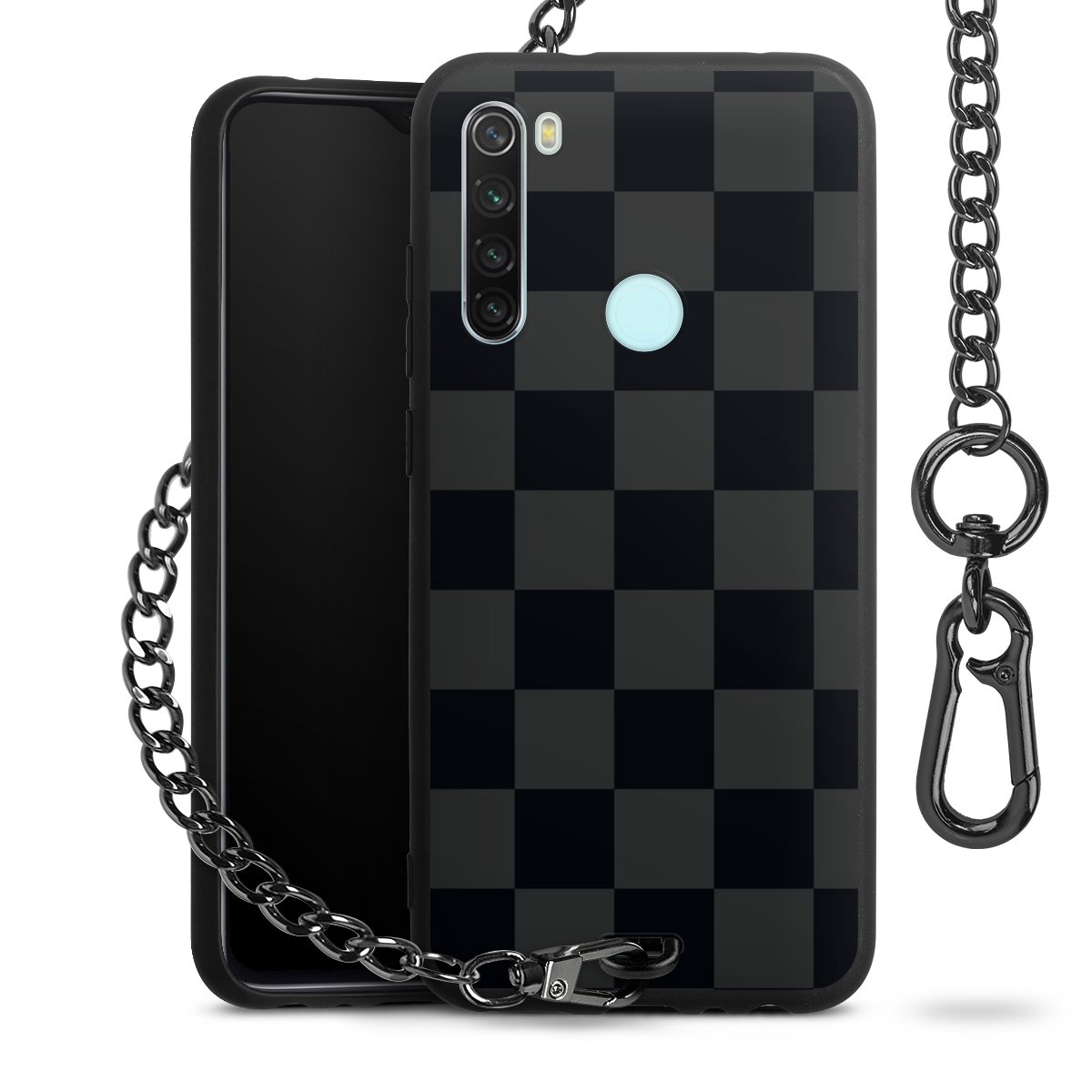 • Mattschwarze Handyhülle mit Metallkette
