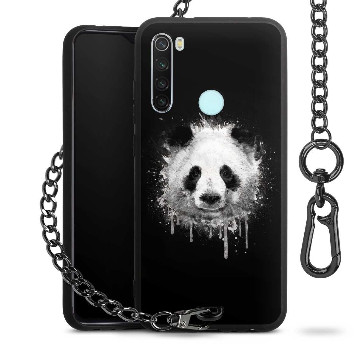 • Mattschwarze Handyhülle mit Metallkette