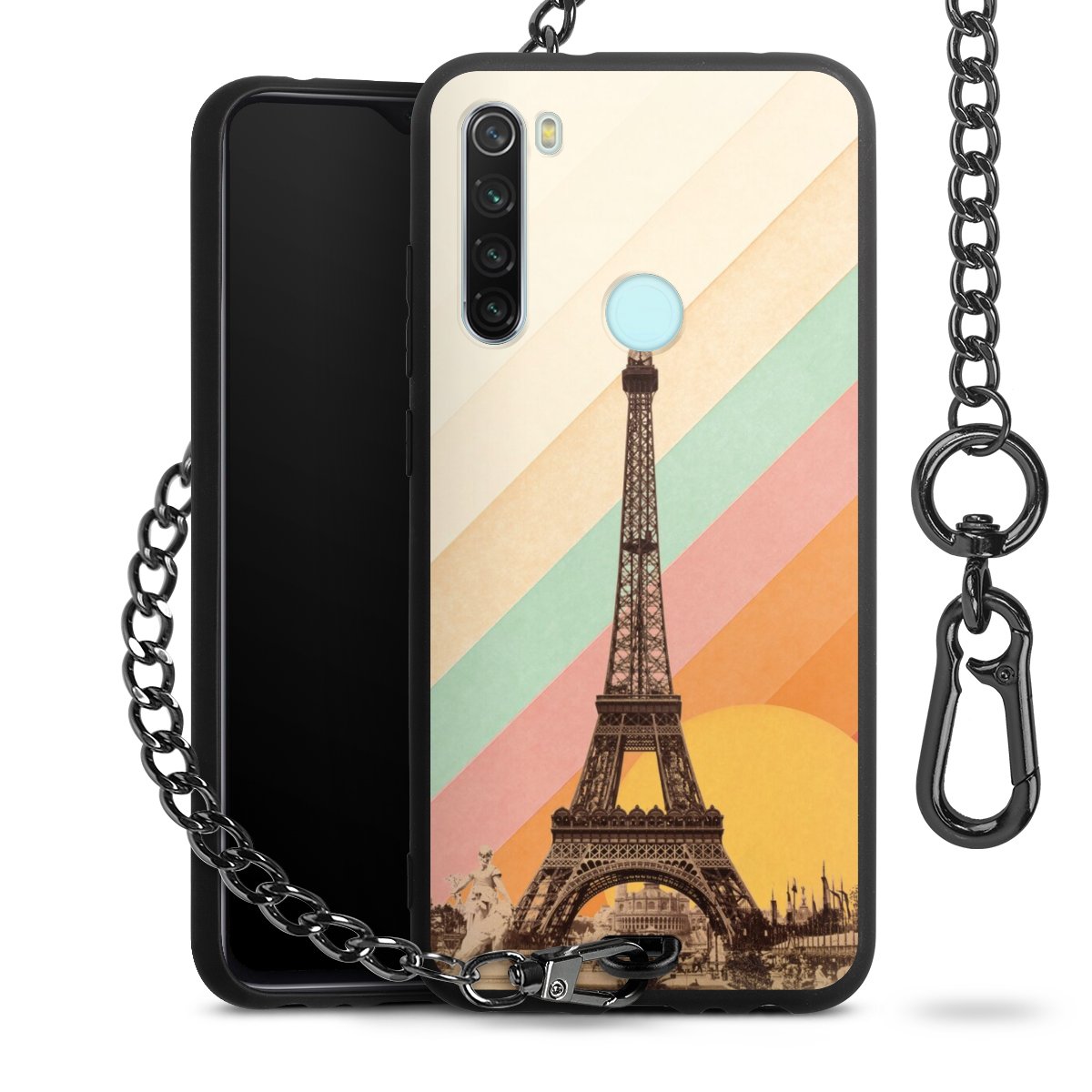 • Mattschwarze Handyhülle mit Metallkette