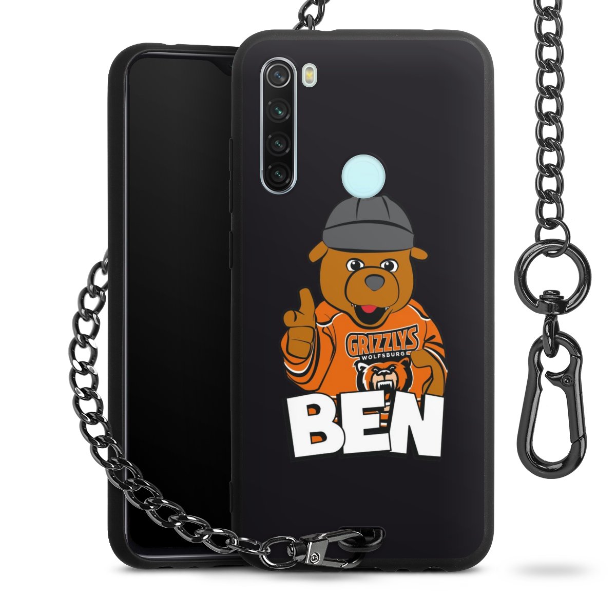 Die mattschwarze Silikon-Handyhülle besteht aus robustem TPU (thermoplastisches Polyurethan). Sie ist flexibel und schützt Dein Smartphone vor Stößen und Kratzern. Die Kette sowie der Karabinerhaken sind aus Metall in Gunmetal-Optik gefertigt. Für dieses Produkt kommen ausschließlich TÜV-geprüfte Materialien zum Einsatz.