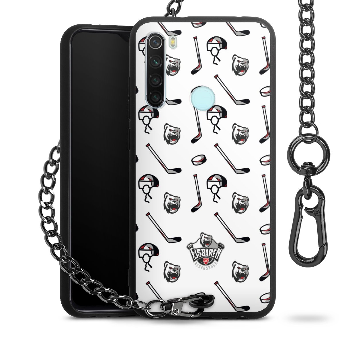 - Mattschwarze Handyhülle mit Metallkette