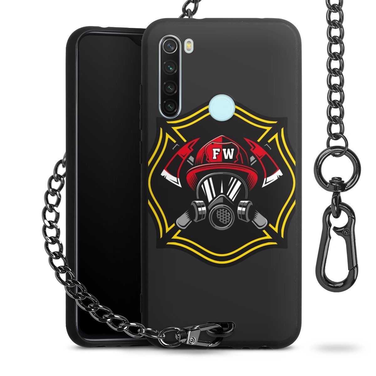 - Mattschwarze Handyhülle mit Metallkette