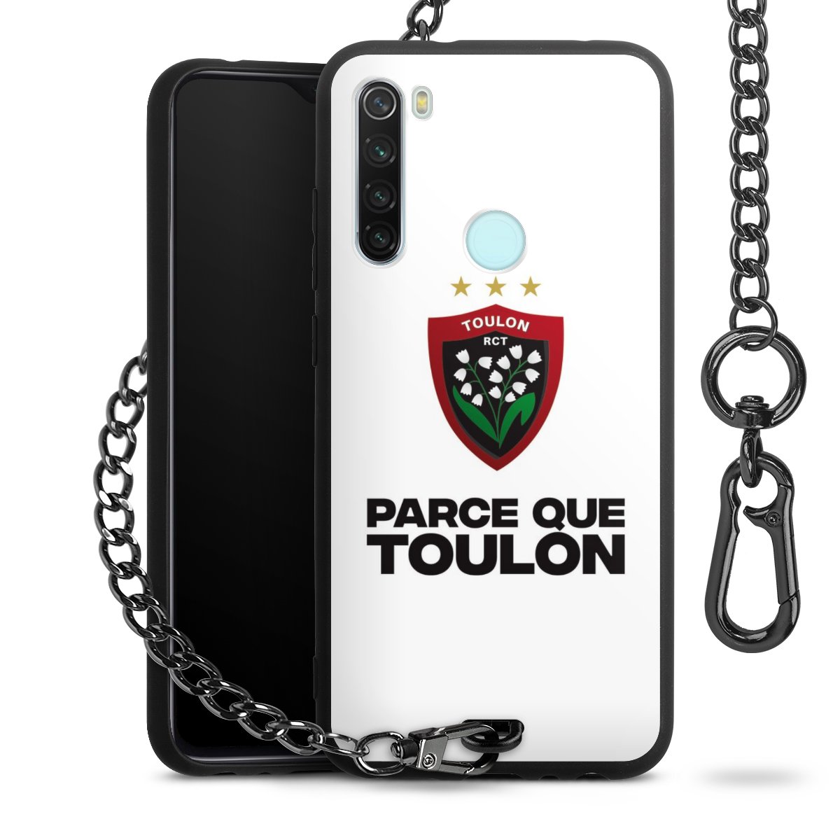 Die mattschwarze Silikon-Handyhülle besteht aus robustem TPU (thermoplastisches Polyurethan). Sie ist flexibel und schützt Dein Smartphone vor Stößen und Kratzern. Die Kette sowie der Karabinerhaken sind aus Metall in Gunmetal-Optik gefertigt. Für dieses Produkt kommen ausschließlich TÜV-geprüfte Materialien zum Einsatz.