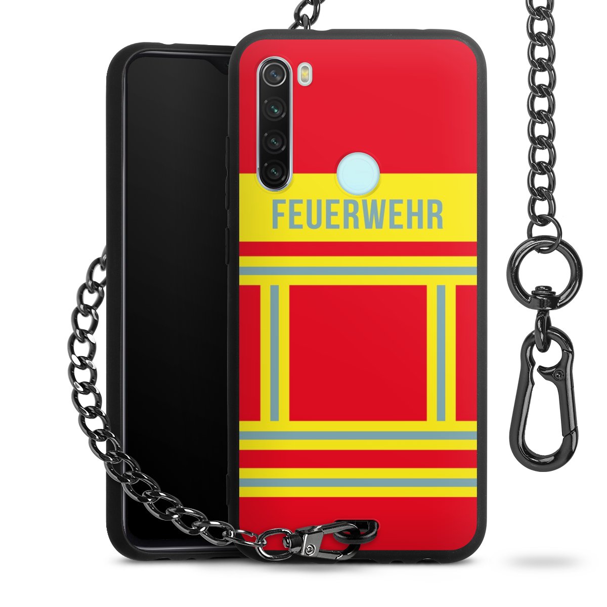- Mattschwarze Handyhülle mit Metallkette