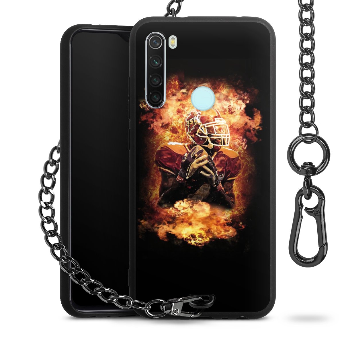 Die mattschwarze Silikon-Handyhülle besteht aus robustem TPU (thermoplastisches Polyurethan). Sie ist flexibel und schützt Dein Smartphone vor Stößen und Kratzern. Die Kette sowie der Karabinerhaken sind aus Metall in Gunmetal-Optik gefertigt. Für dieses Produkt kommen ausschließlich TÜV-geprüfte Materialien zum Einsatz.