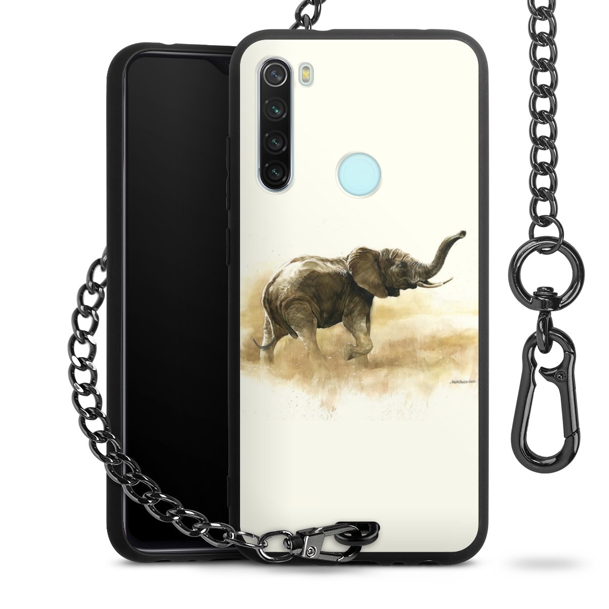 Die mattschwarze Silikon-Handyhülle besteht aus robustem TPU (thermoplastisches Polyurethan). Sie ist flexibel und schützt Dein Smartphone vor Stößen und Kratzern. Die Kette sowie der Karabinerhaken sind aus Metall in Gunmetal-Optik gefertigt. Für dieses Produkt kommen ausschließlich TÜV-geprüfte Materialien zum Einsatz.