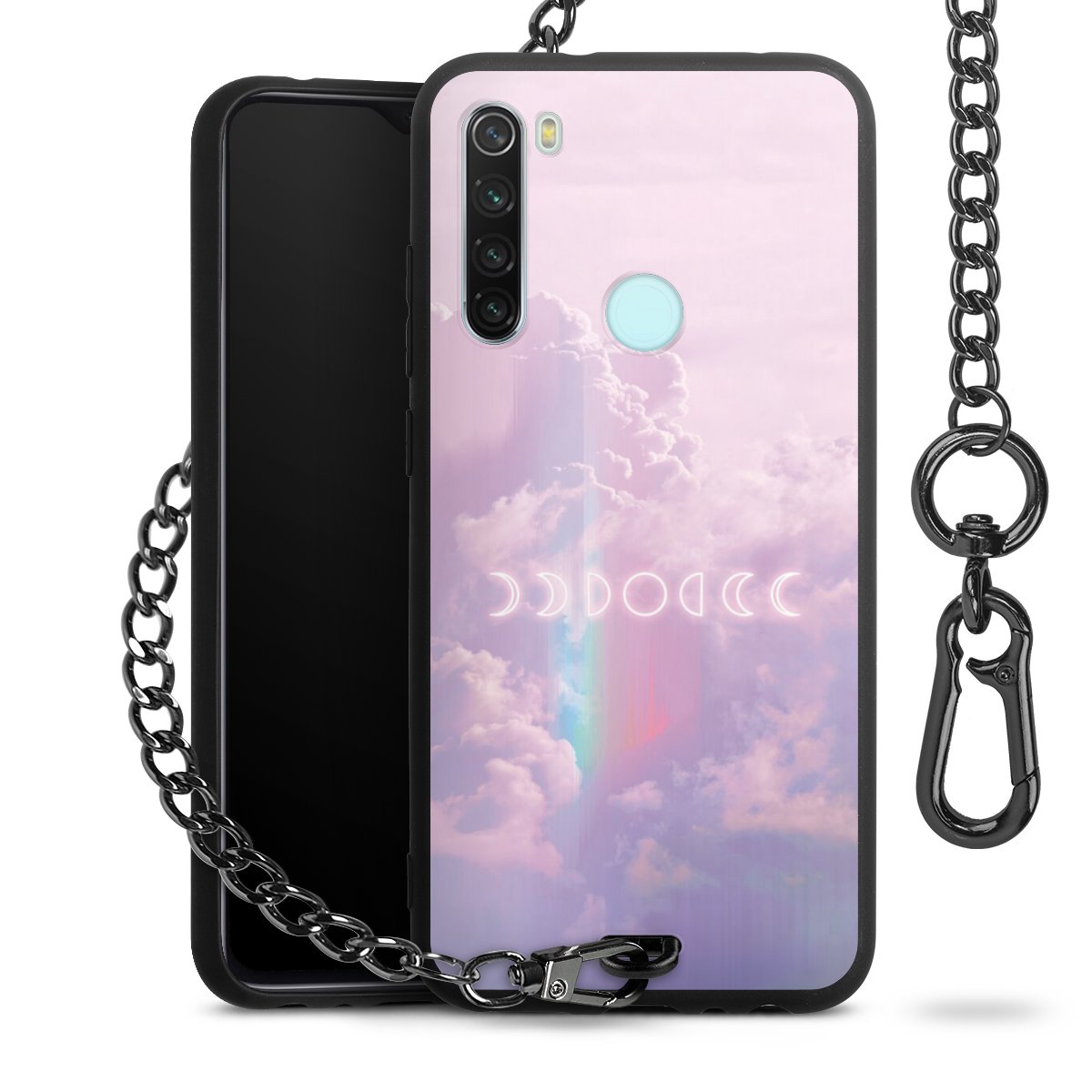 Die Handyhülle verfügt über eine mittig am unteren Rand platzierte Öse, an der die Metallkette stabil befestigt ist. Bestelle die Hülle einfach für Dein Smartphone-Modell, dann passt sie wie angegossen und Du brauchst sie bloß einmal anzudrücken. Handy in die Tasche, Karabiner an den Hosenbund – schon kann die Party starten.