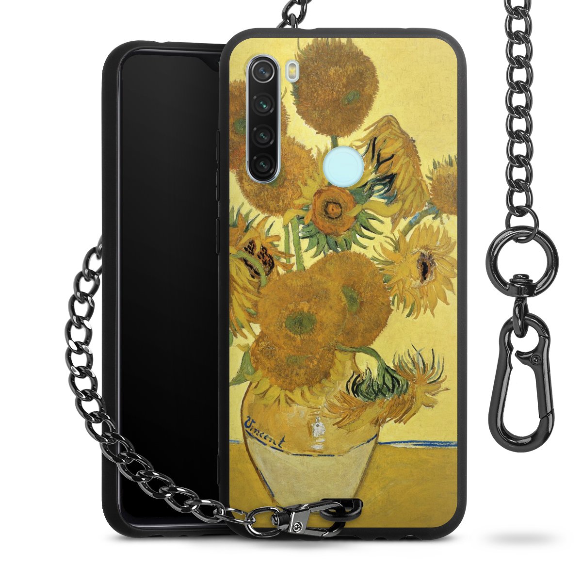 Die mattschwarze Silikon-Handyhülle besteht aus robustem TPU (thermoplastisches Polyurethan). Sie ist flexibel und schützt Dein Smartphone vor Stößen und Kratzern. Die Kette sowie der Karabinerhaken sind aus Metall in Gunmetal-Optik gefertigt. Für dieses Produkt kommen ausschließlich TÜV-geprüfte Materialien zum Einsatz.