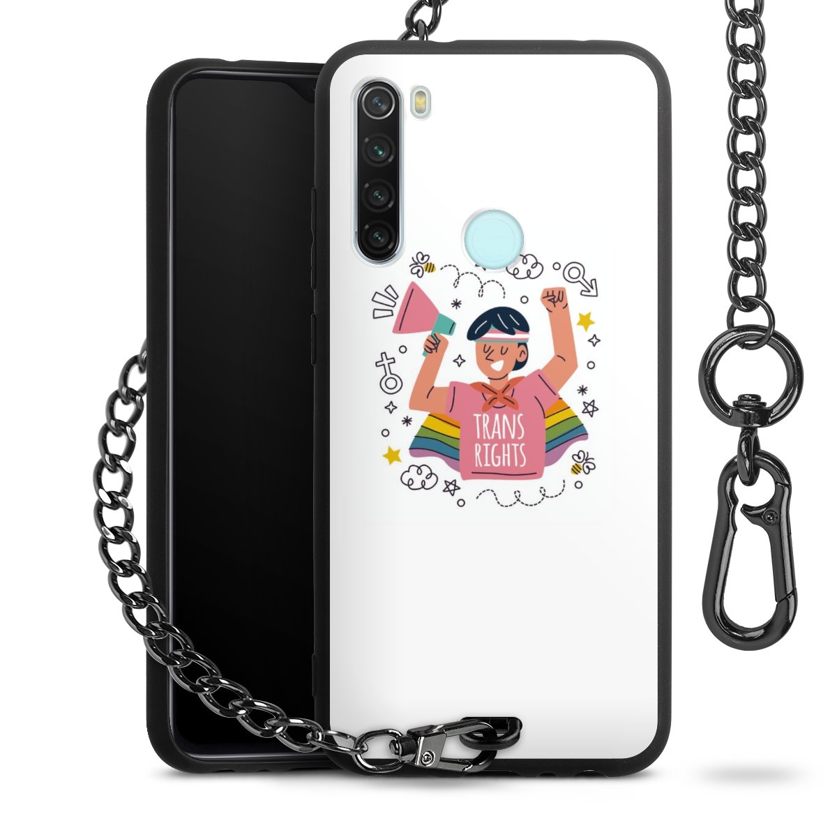 Die mattschwarze Silikon-Handyhülle besteht aus robustem TPU (thermoplastisches Polyurethan). Sie ist flexibel und schützt Dein Smartphone vor Stößen und Kratzern. Die Kette sowie der Karabinerhaken sind aus Metall in Gunmetal-Optik gefertigt. Für dieses Produkt kommen ausschließlich TÜV-geprüfte Materialien zum Einsatz.