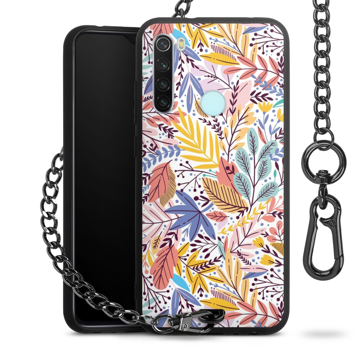 • Mattschwarze Handyhülle mit Metallkette