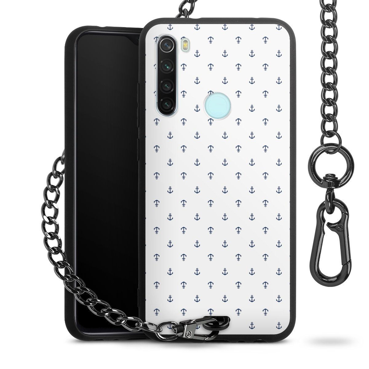 - Mattschwarze Handyhülle mit Metallkette