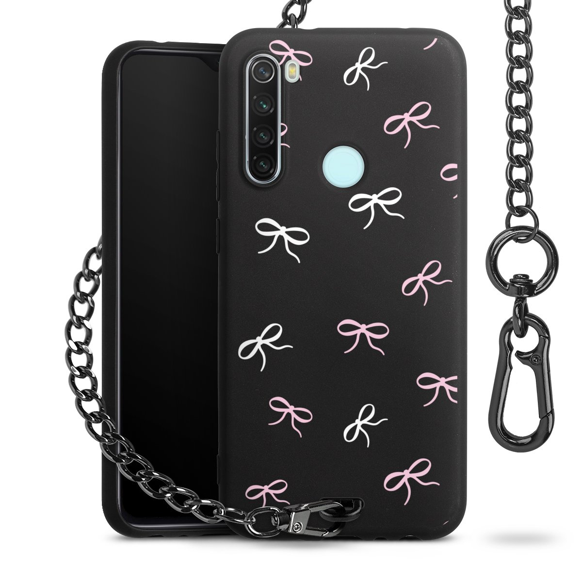 - Mattschwarze Handyhülle mit Metallkette