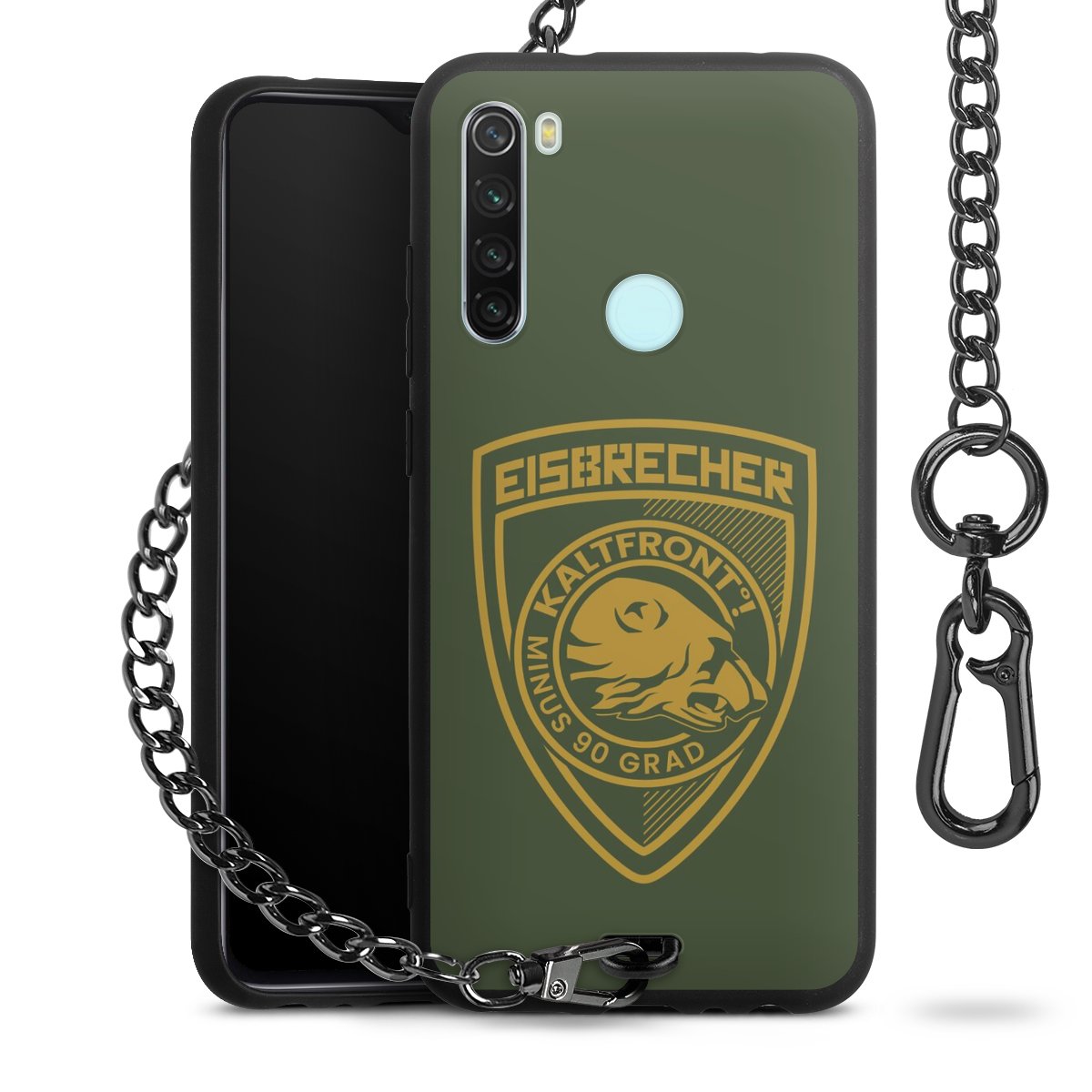 Die mattschwarze Silikon-Handyhülle besteht aus robustem TPU (thermoplastisches Polyurethan). Sie ist flexibel und schützt Dein Smartphone vor Stößen und Kratzern. Die Kette sowie der Karabinerhaken sind aus Metall in Gunmetal-Optik gefertigt. Für dieses Produkt kommen ausschließlich TÜV-geprüfte Materialien zum Einsatz.