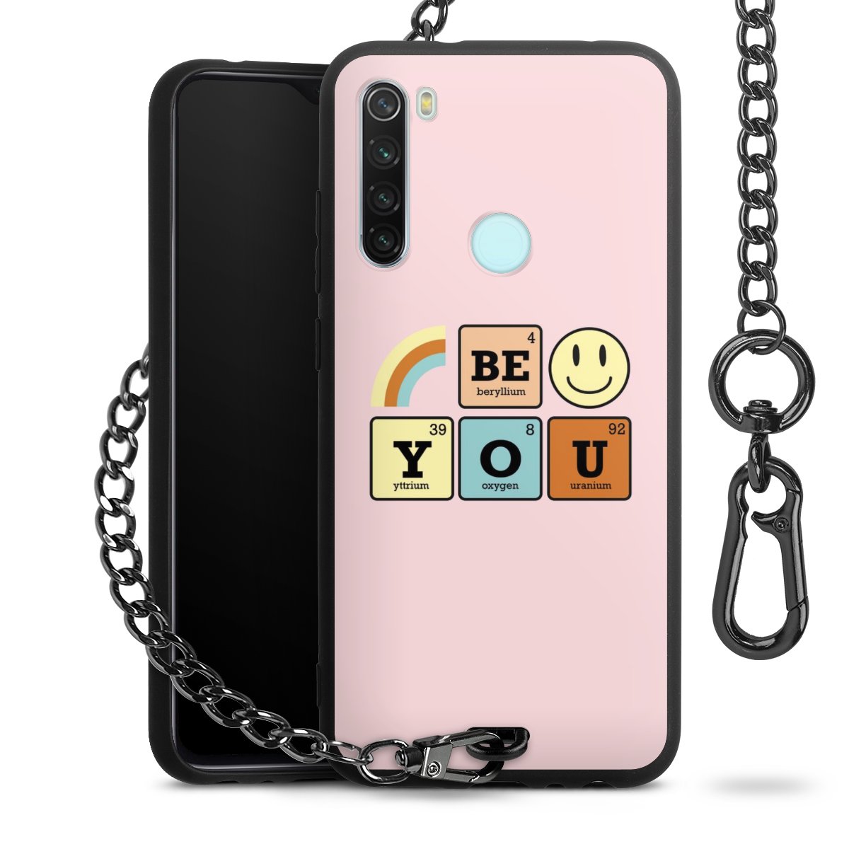 Die mattschwarze Silikon-Handyhülle besteht aus robustem TPU (thermoplastisches Polyurethan). Sie ist flexibel und schützt Dein Smartphone vor Stößen und Kratzern. Die Kette sowie der Karabinerhaken sind aus Metall in Gunmetal-Optik gefertigt. Für dieses Produkt kommen ausschließlich TÜV-geprüfte Materialien zum Einsatz.