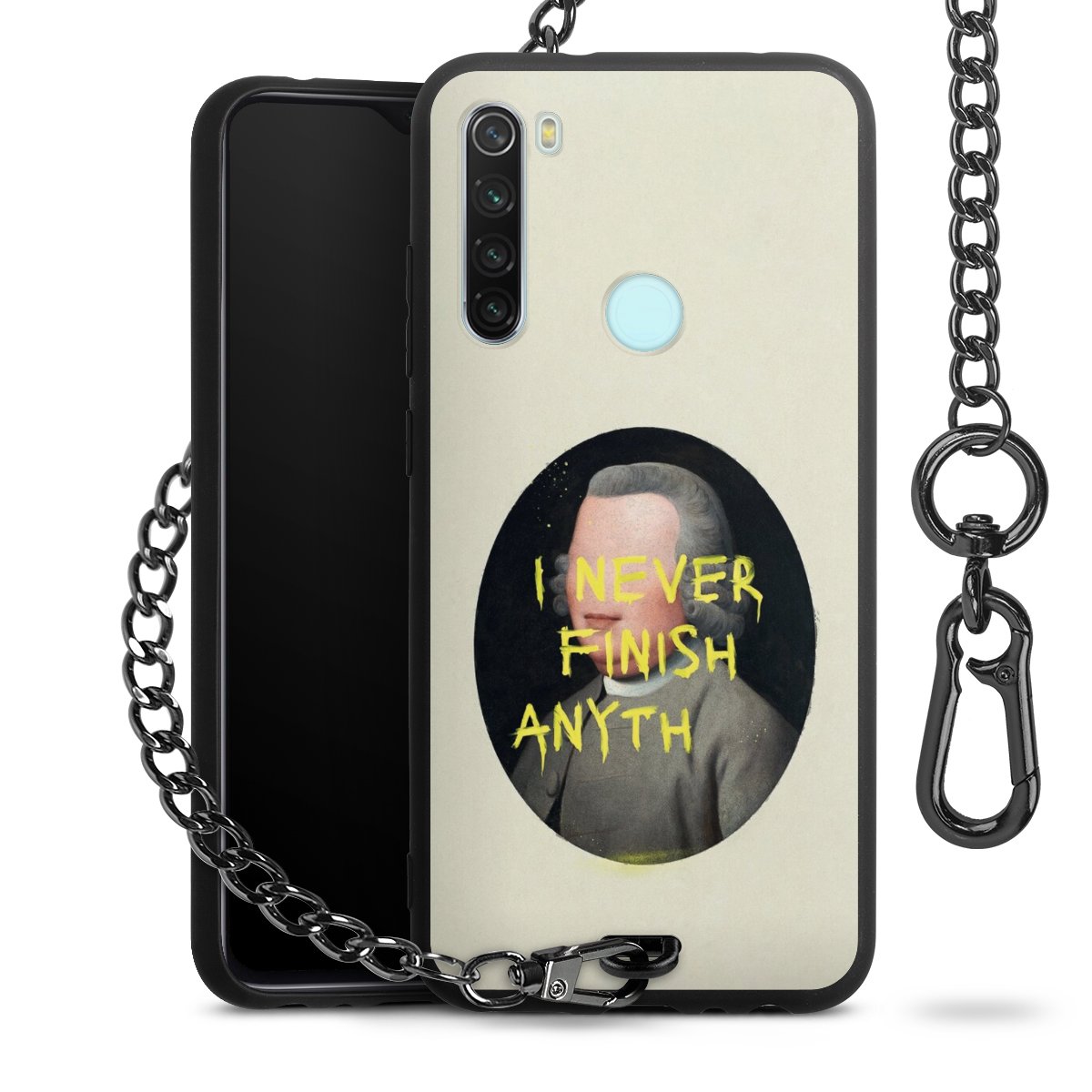 • Mattschwarze Handyhülle mit Metallkette