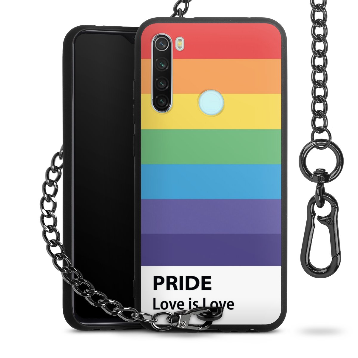 Die mattschwarze Silikon-Handyhülle besteht aus robustem TPU (thermoplastisches Polyurethan). Sie ist flexibel und schützt Dein Smartphone vor Stößen und Kratzern. Die Kette sowie der Karabinerhaken sind aus Metall in Gunmetal-Optik gefertigt. Für dieses Produkt kommen ausschließlich TÜV-geprüfte Materialien zum Einsatz.