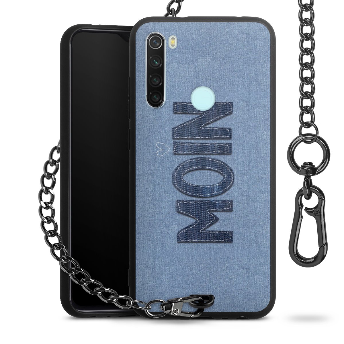 • Mattschwarze Handyhülle mit Metallkette