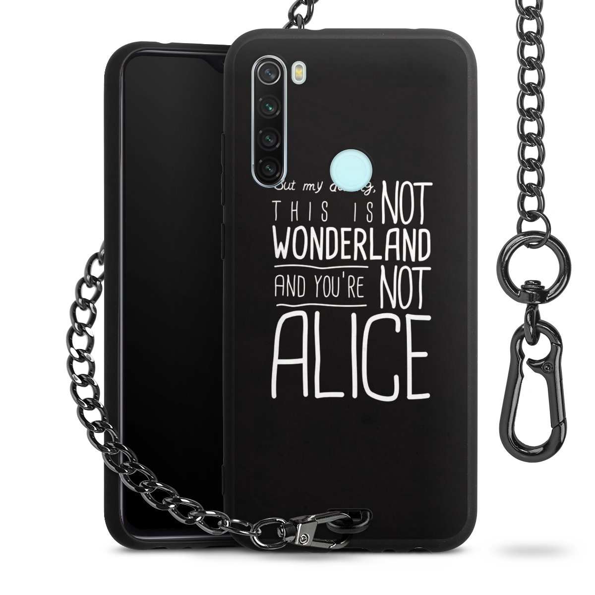 Die mattschwarze Silikon-Handyhülle besteht aus robustem TPU (thermoplastisches Polyurethan). Sie ist flexibel und schützt Dein Smartphone vor Stößen und Kratzern. Die Kette sowie der Karabinerhaken sind aus Metall in Gunmetal-Optik gefertigt. Für dieses Produkt kommen ausschließlich TÜV-geprüfte Materialien zum Einsatz.