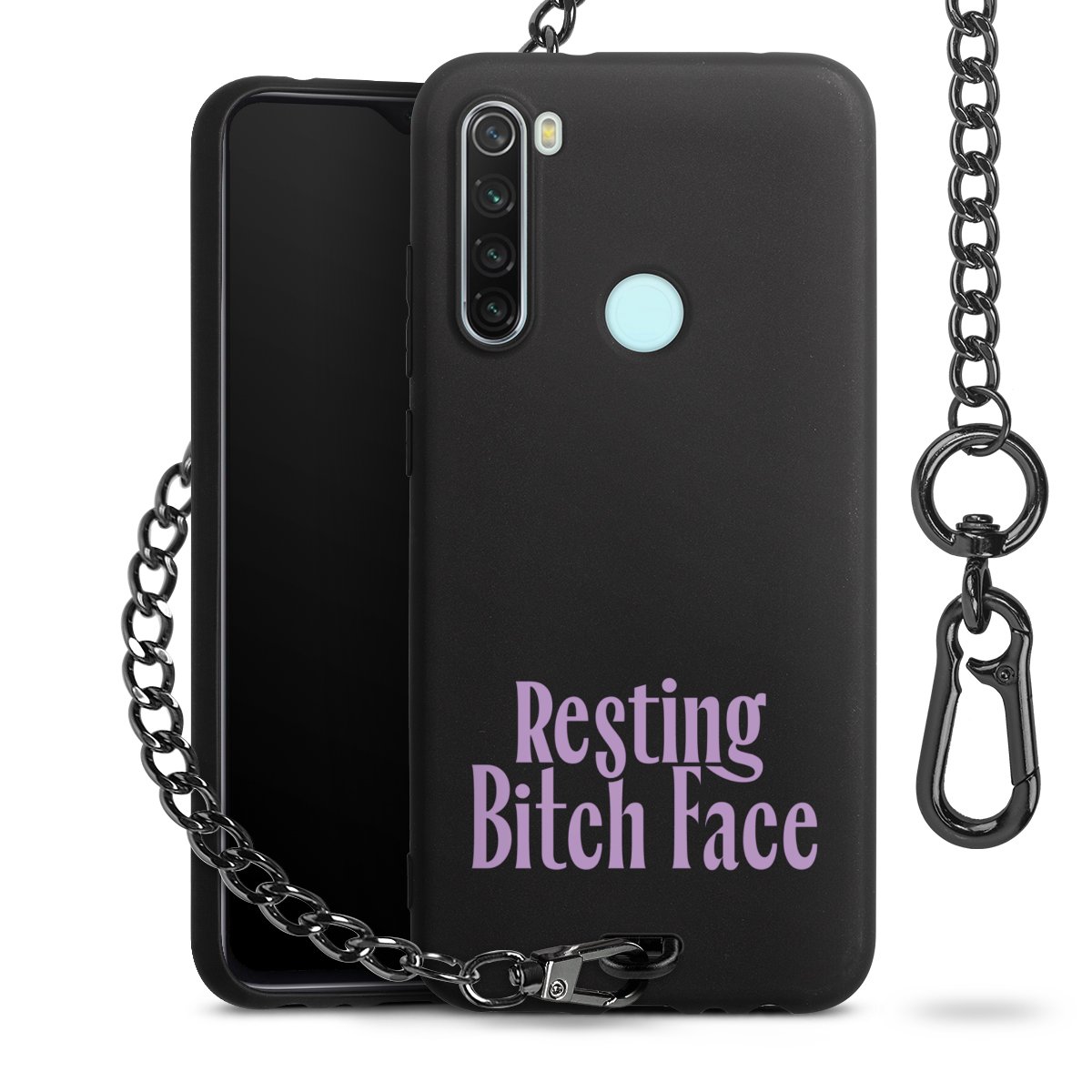 - Mattschwarze Handyhülle mit Metallkette