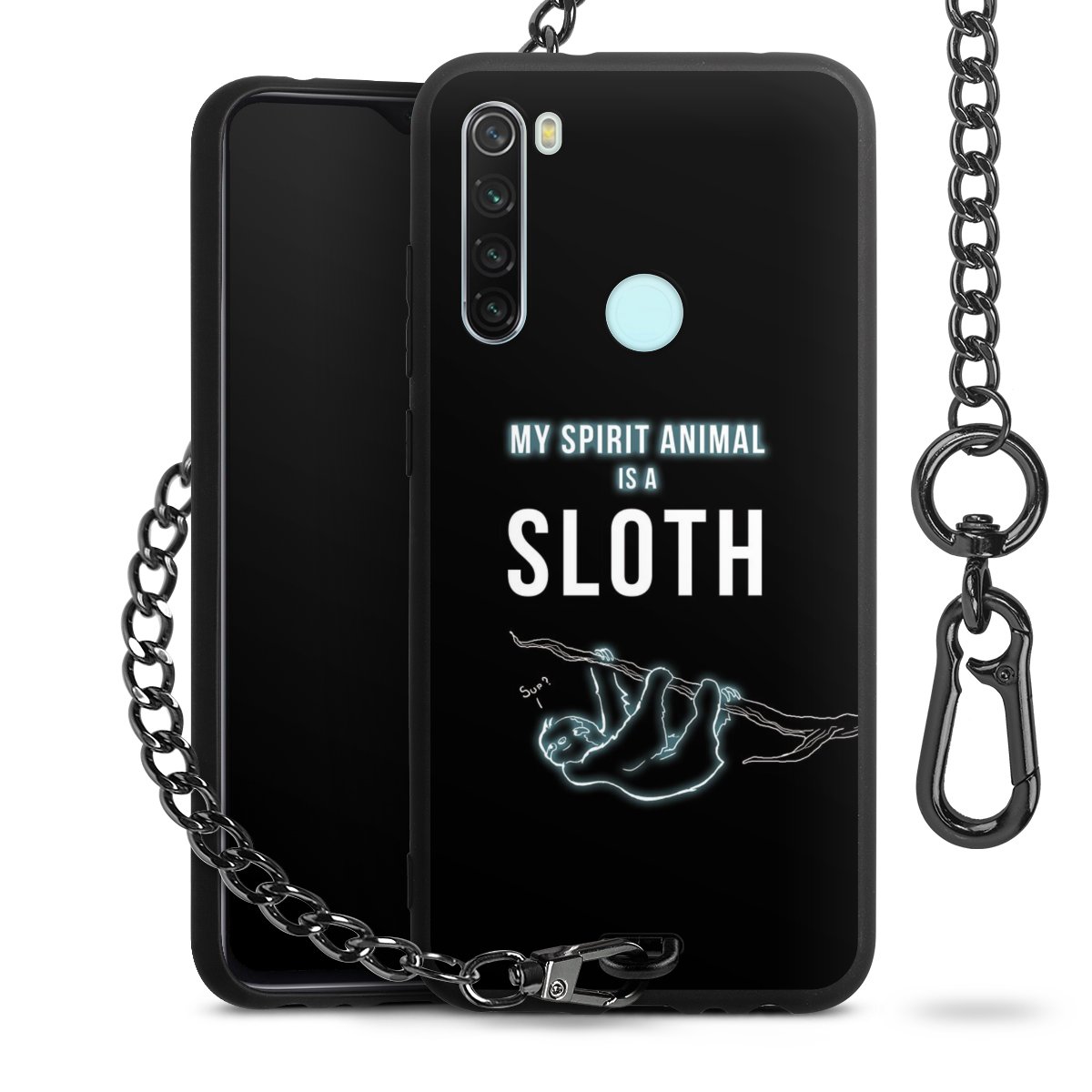 Die mattschwarze Silikon-Handyhülle besteht aus robustem TPU (thermoplastisches Polyurethan). Sie ist flexibel und schützt Dein Smartphone vor Stößen und Kratzern. Die Kette sowie der Karabinerhaken sind aus Metall in Gunmetal-Optik gefertigt. Für dieses Produkt kommen ausschließlich TÜV-geprüfte Materialien zum Einsatz.