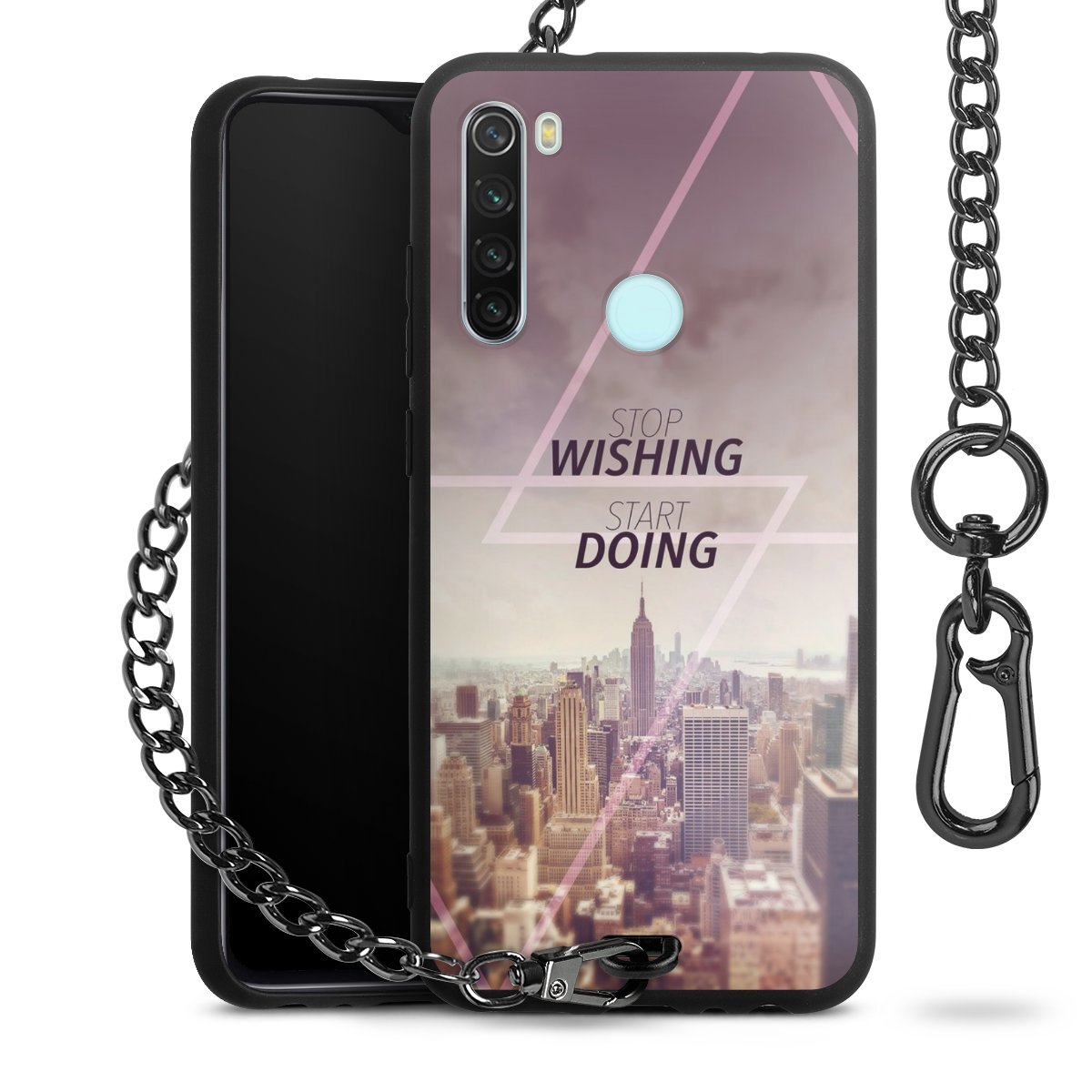 - Mattschwarze Handyhülle mit Metallkette