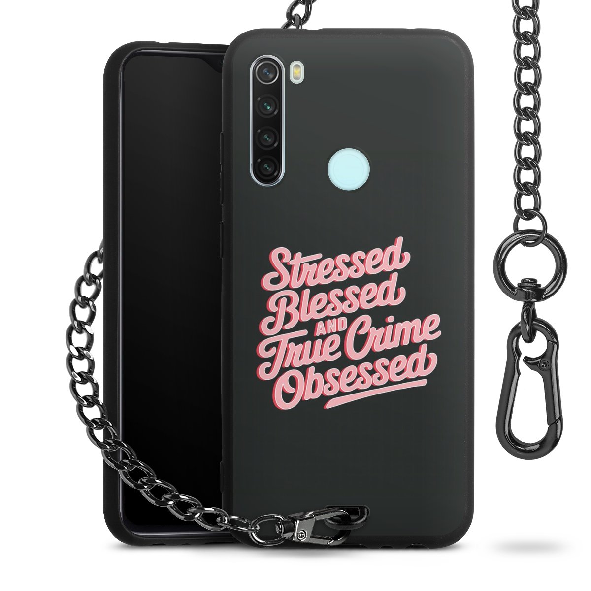 Die mattschwarze Silikon-Handyhülle besteht aus robustem TPU (thermoplastisches Polyurethan). Sie ist flexibel und schützt Dein Smartphone vor Stößen und Kratzern. Die Kette sowie der Karabinerhaken sind aus Metall in Gunmetal-Optik gefertigt. Für dieses Produkt kommen ausschließlich TÜV-geprüfte Materialien zum Einsatz.