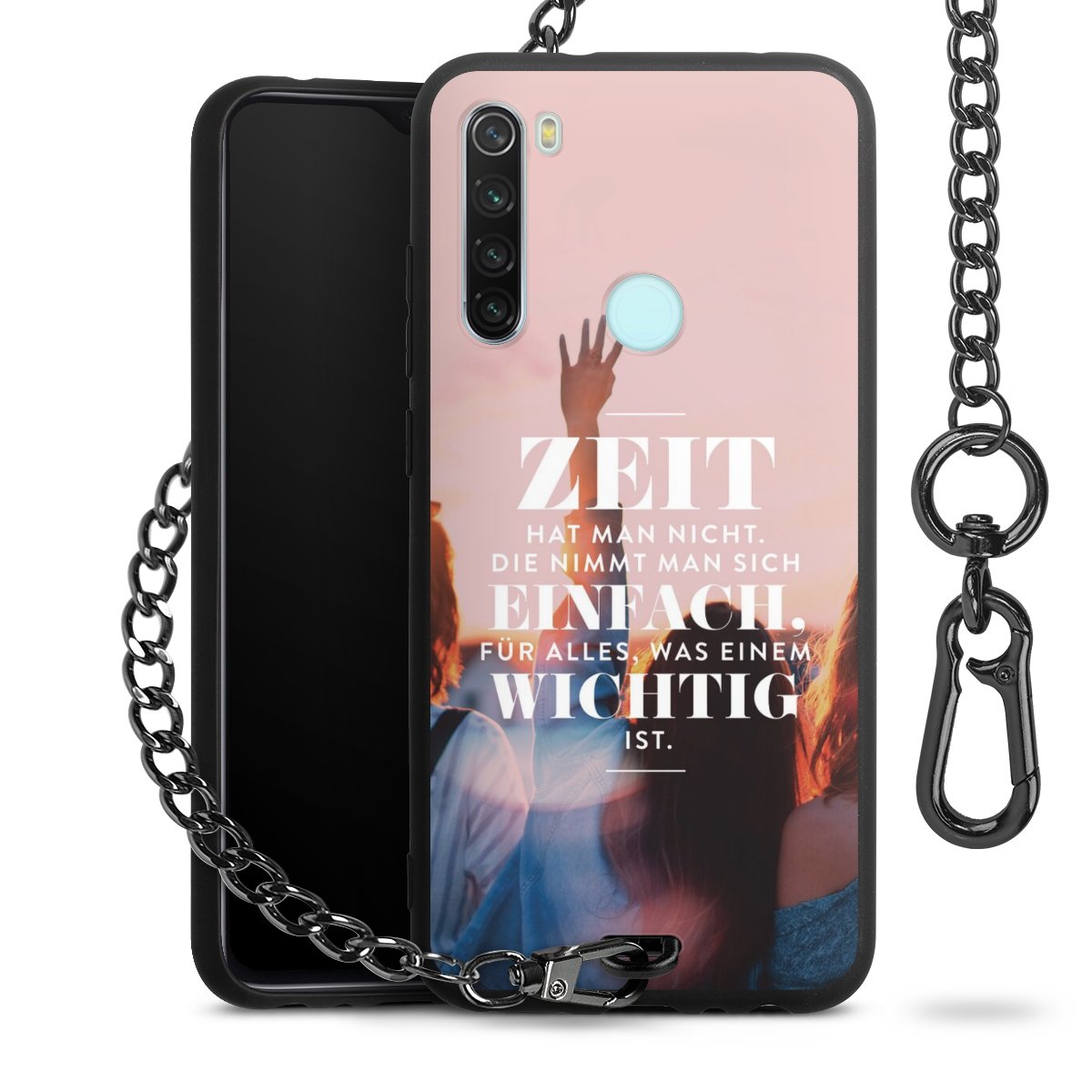 Die mattschwarze Silikon-Handyhülle besteht aus robustem TPU (thermoplastisches Polyurethan). Sie ist flexibel und schützt Dein Smartphone vor Stößen und Kratzern. Die Kette sowie der Karabinerhaken sind aus Metall in Gunmetal-Optik gefertigt. Für dieses Produkt kommen ausschließlich TÜV-geprüfte Materialien zum Einsatz.