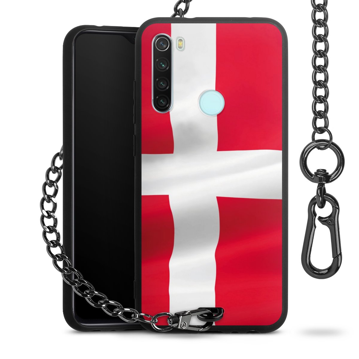 Die mattschwarze Silikon-Handyhülle besteht aus robustem TPU (thermoplastisches Polyurethan). Sie ist flexibel und schützt Dein Smartphone vor Stößen und Kratzern. Die Kette sowie der Karabinerhaken sind aus Metall in Gunmetal-Optik gefertigt. Für dieses Produkt kommen ausschließlich TÜV-geprüfte Materialien zum Einsatz.