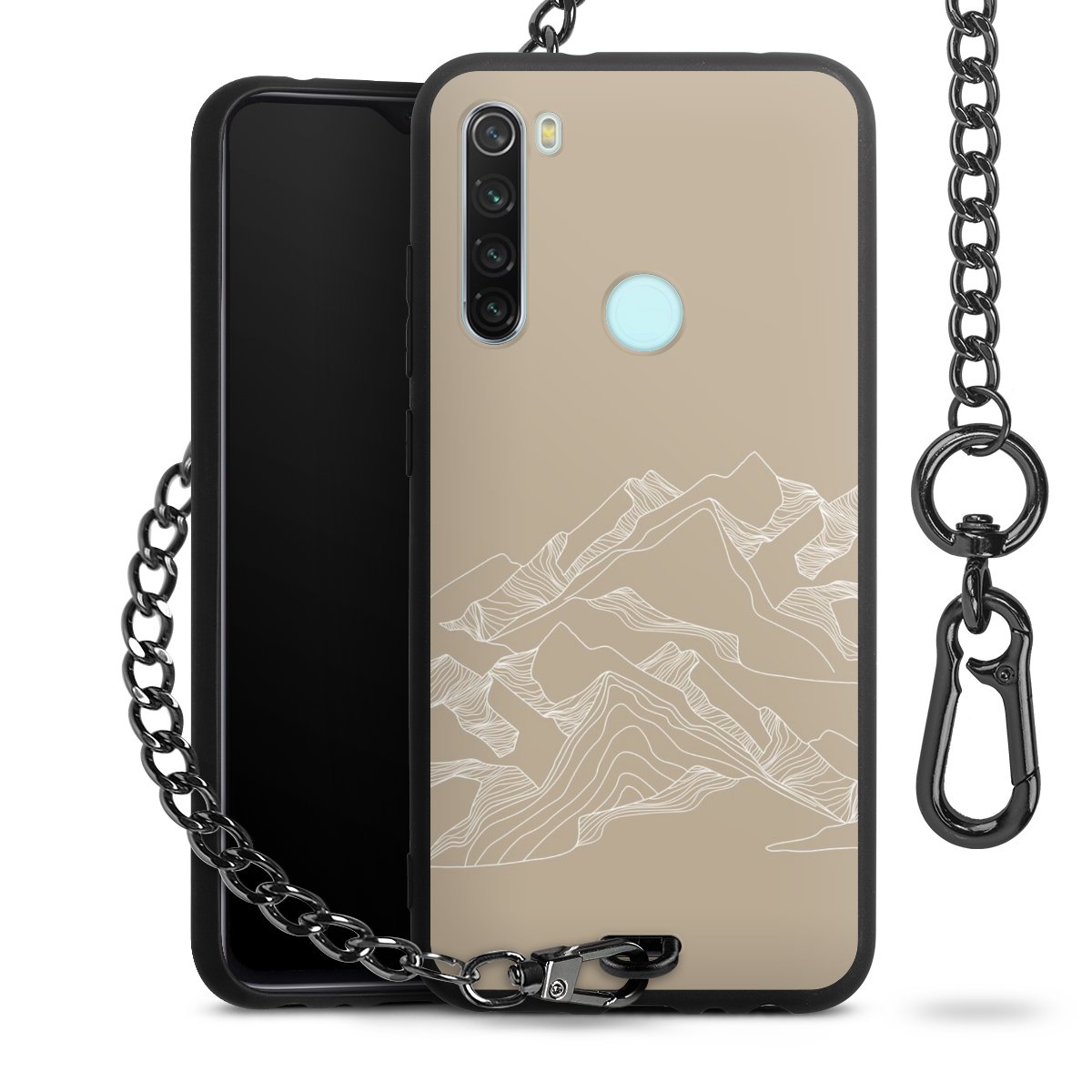 - Mattschwarze Handyhülle mit Metallkette
