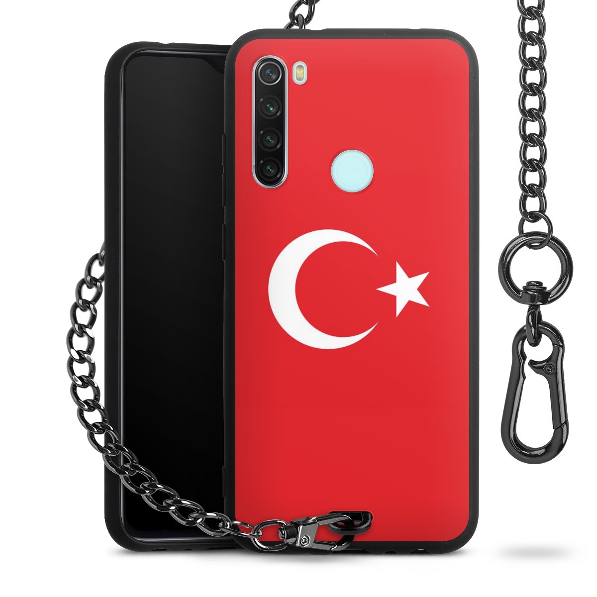 Die mattschwarze Silikon-Handyhülle besteht aus robustem TPU (thermoplastisches Polyurethan). Sie ist flexibel und schützt Dein Smartphone vor Stößen und Kratzern. Die Kette sowie der Karabinerhaken sind aus Metall in Gunmetal-Optik gefertigt. Für dieses Produkt kommen ausschließlich TÜV-geprüfte Materialien zum Einsatz.