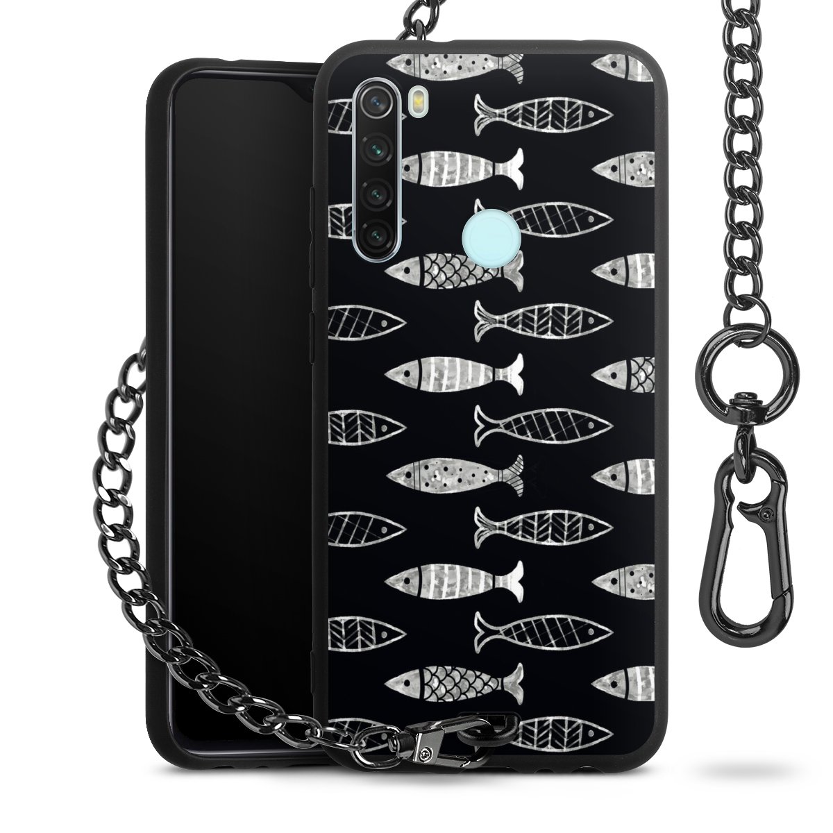 • Mattschwarze Handyhülle mit Metallkette