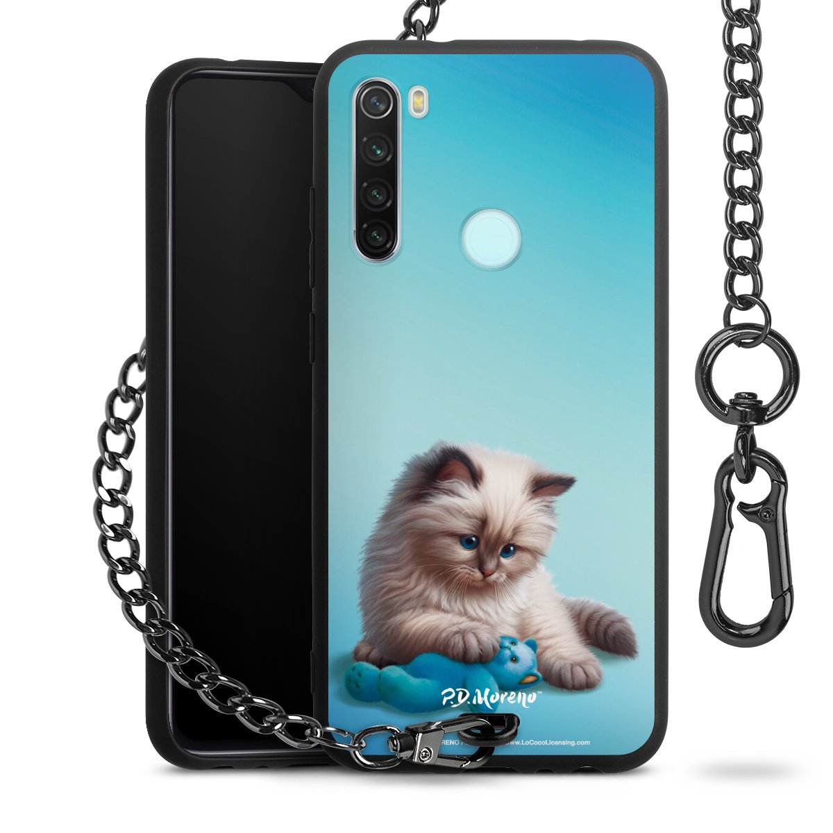 Die mattschwarze Silikon-Handyhülle besteht aus robustem TPU (thermoplastisches Polyurethan). Sie ist flexibel und schützt Dein Smartphone vor Stößen und Kratzern. Die Kette sowie der Karabinerhaken sind aus Metall in Gunmetal-Optik gefertigt. Für dieses Produkt kommen ausschließlich TÜV-geprüfte Materialien zum Einsatz.