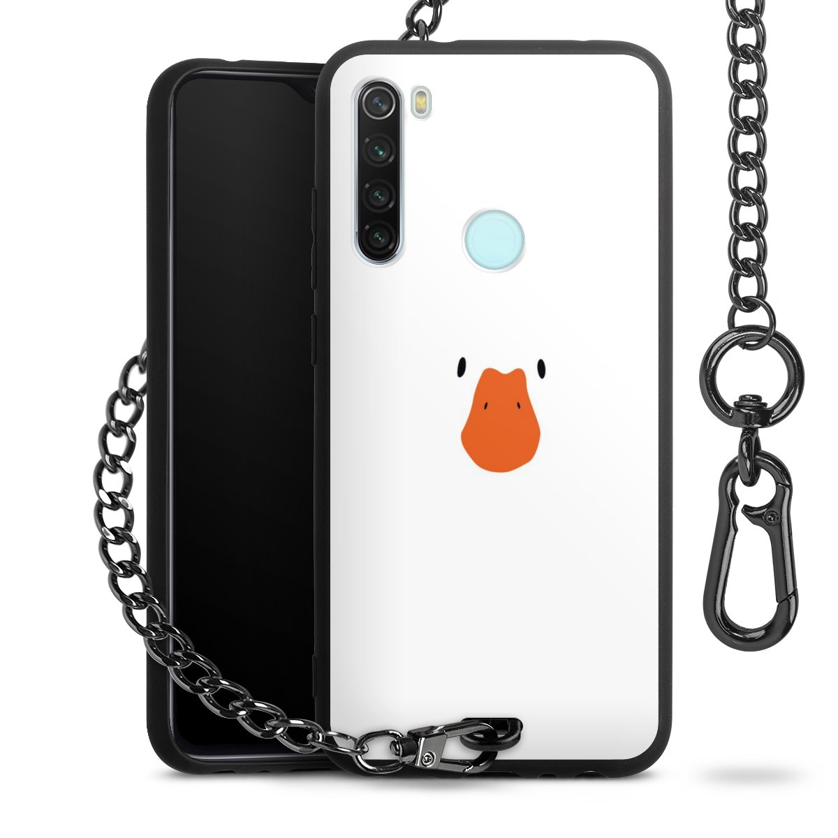 Die Handyhülle verfügt über eine mittig am unteren Rand platzierte Öse, an der die Metallkette stabil befestigt ist. Bestelle die Hülle einfach für Dein Smartphone-Modell, dann passt sie wie angegossen und Du brauchst sie bloß einmal anzudrücken. Handy in die Tasche, Karabiner an den Hosenbund – schon kann die Party starten.