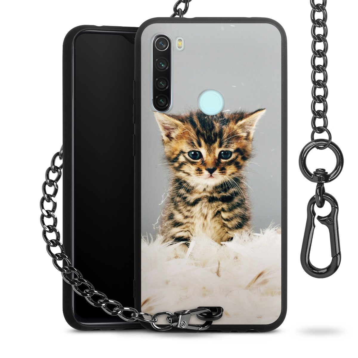 Die mattschwarze Silikon-Handyhülle besteht aus robustem TPU (thermoplastisches Polyurethan). Sie ist flexibel und schützt Dein Smartphone vor Stößen und Kratzern. Die Kette sowie der Karabinerhaken sind aus Metall in Gunmetal-Optik gefertigt. Für dieses Produkt kommen ausschließlich TÜV-geprüfte Materialien zum Einsatz.