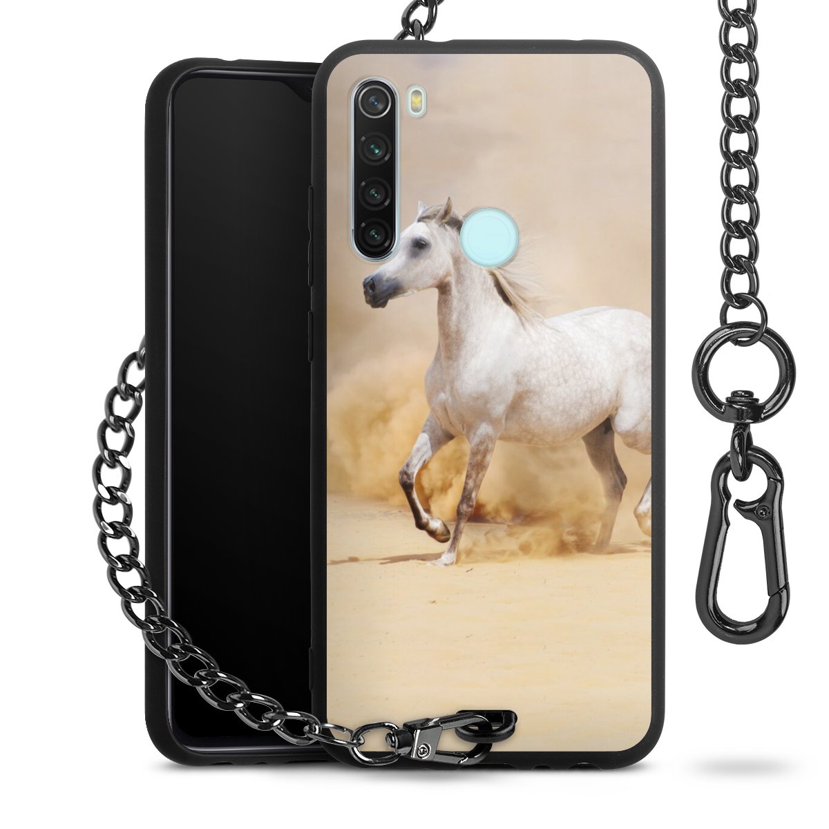 Die mattschwarze Silikon-Handyhülle besteht aus robustem TPU (thermoplastisches Polyurethan). Sie ist flexibel und schützt Dein Smartphone vor Stößen und Kratzern. Die Kette sowie der Karabinerhaken sind aus Metall in Gunmetal-Optik gefertigt. Für dieses Produkt kommen ausschließlich TÜV-geprüfte Materialien zum Einsatz.