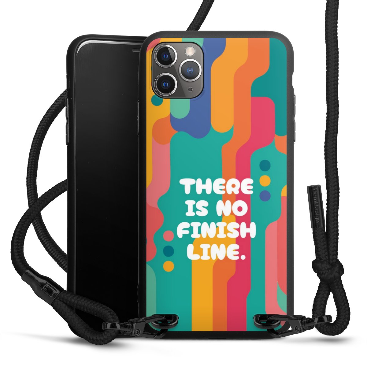 Pure Black: Handyhülle, Stoffband und Metalldetails in stylischem Mattschwarz.
