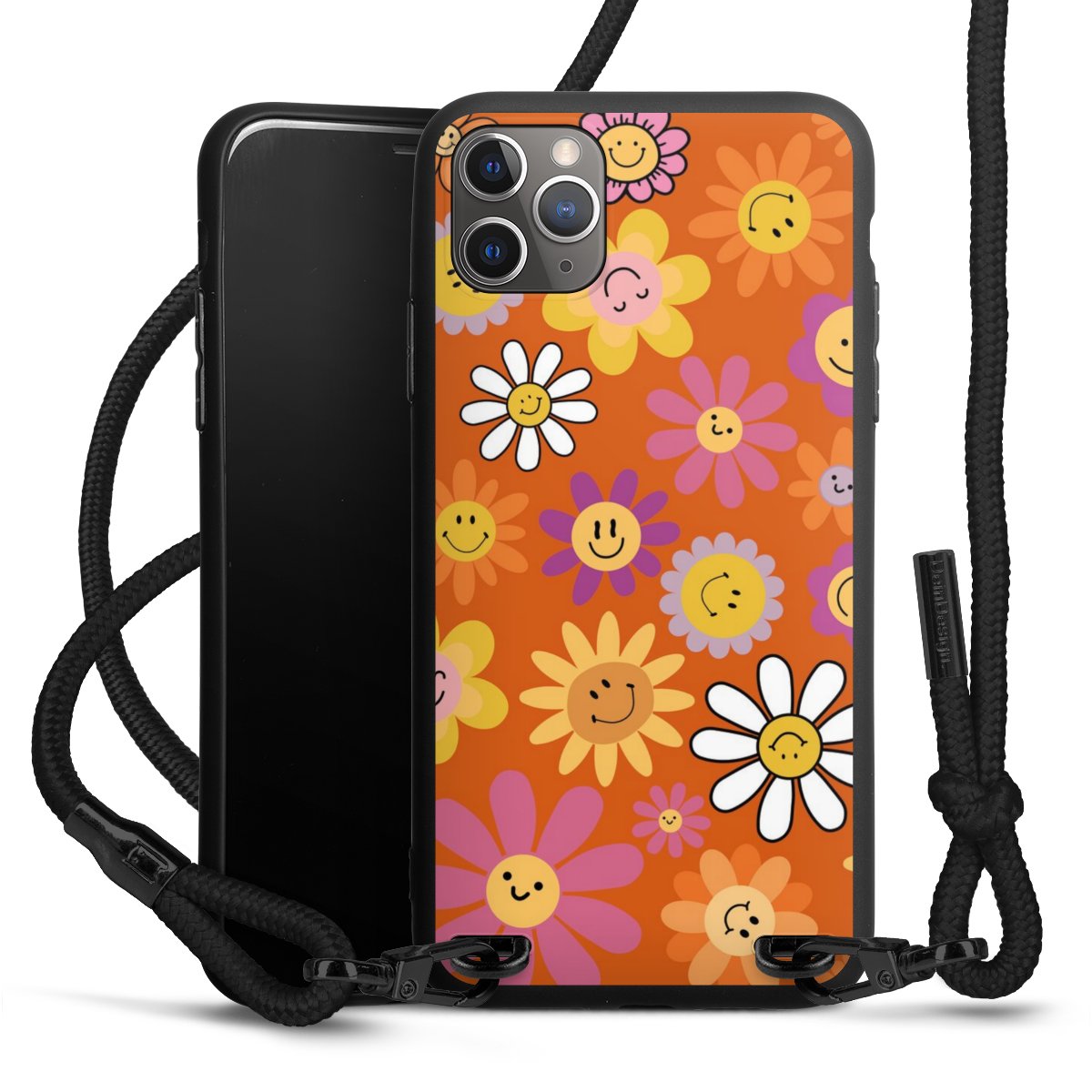 Pure Black: Handyhülle, Stoffband und Metalldetails in stylischem Mattschwarz.