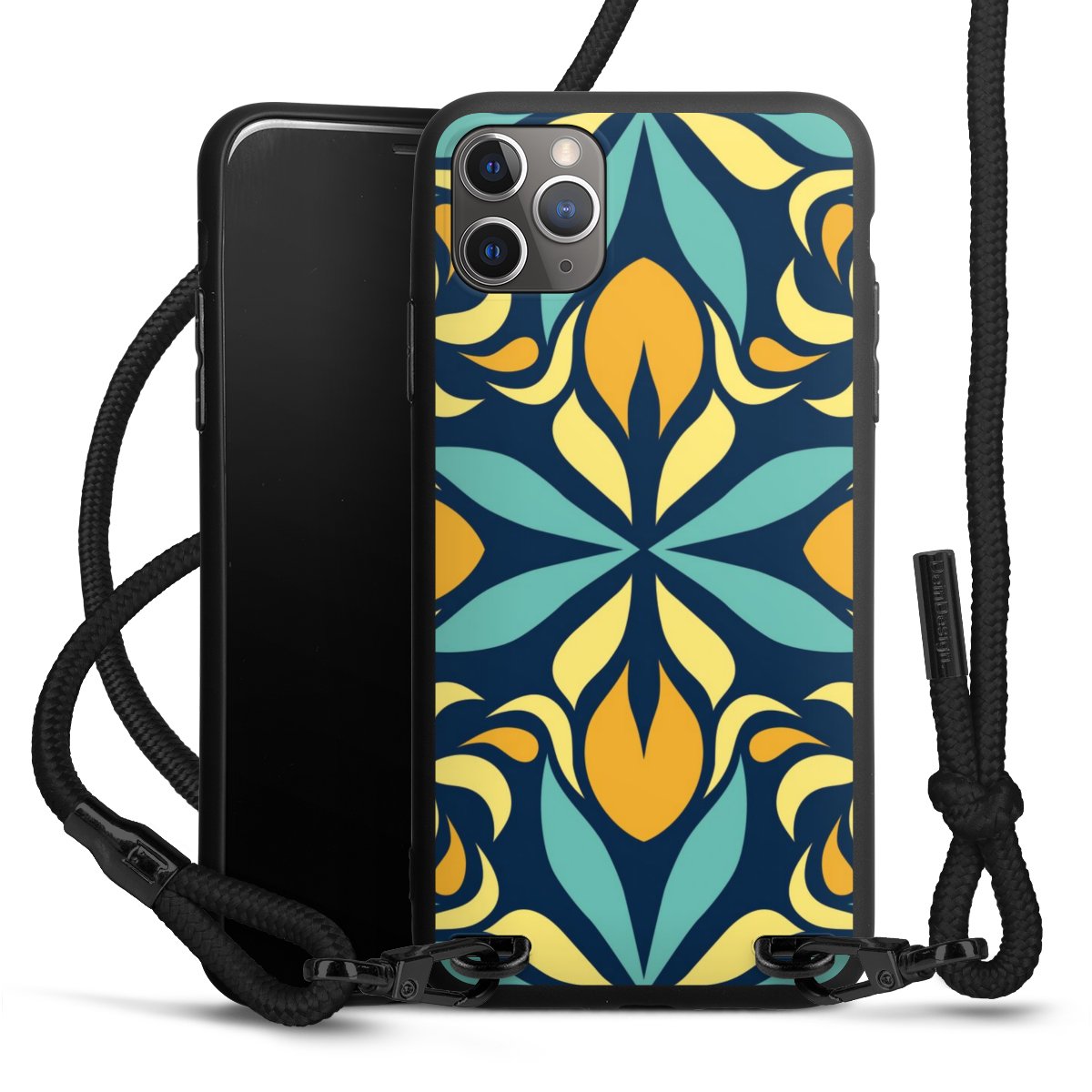 Die mattschwarze Silikonhülle besteht aus flexiblen TPU (thermoplastisches Polyurethan) und bietet robusten Schutz. Durch das langlebige, bruchsichere Material ist die Hülle biegsam und formbeständig zugleich. Die matte Oberfläche lässt Dein Design besser zur Geltung kommen und ist weniger anfällig für Fingerabdrücke und Schmutz. Das stylische Trend-Accessoire liegt griffig in der Hand und wird optimal von der Handykette aus Stoff (Polyester) ergänzt. Das geflochtene Stoffband ist ca. 1,70 Meter lang mit einem Durchmesser von ca. 0,5cm. Aufgrund der besonderen Knotentechnik ist das Band durch einfaches Ziehen in der Länge verstellbar. Als kleines i-Tüpfelchen haben wir das Band mit schicken Metall-Verschlüssen in Mattschwarz versehen.