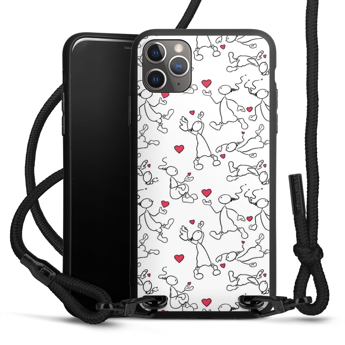 Pure Black: Handyhülle, Stoffband und Metalldetails in stylischem Mattschwarz.
