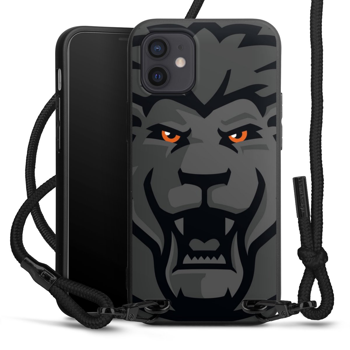 Pure Black: Handyhülle, Stoffband und Metalldetails in stylischem Mattschwarz.