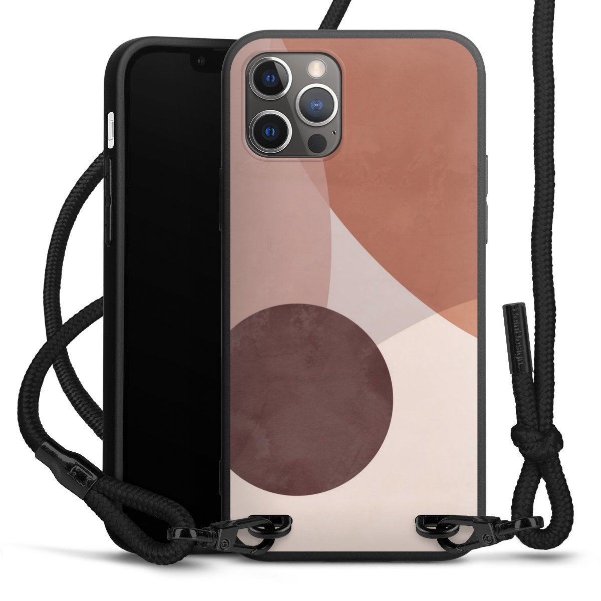 Pure Black: Handyhülle, Stoffband und Metalldetails in stylischem Mattschwarz.