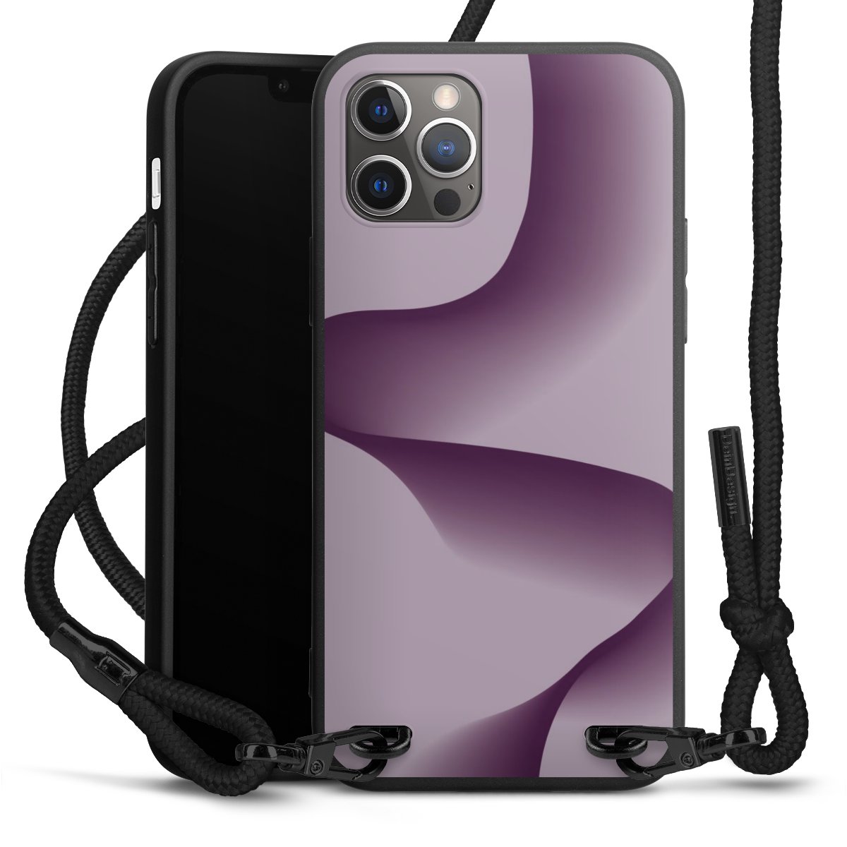 Pure Black: Handyhülle, Stoffband und Metalldetails in stylischem Mattschwarz.